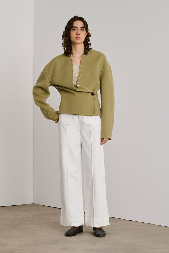 HARRY es un pantalón icónico del vestuario Soeur, con bolsillos aplicados y pliegue marcado. Versión en denim grueso color crudo, cómodo y flexible.
