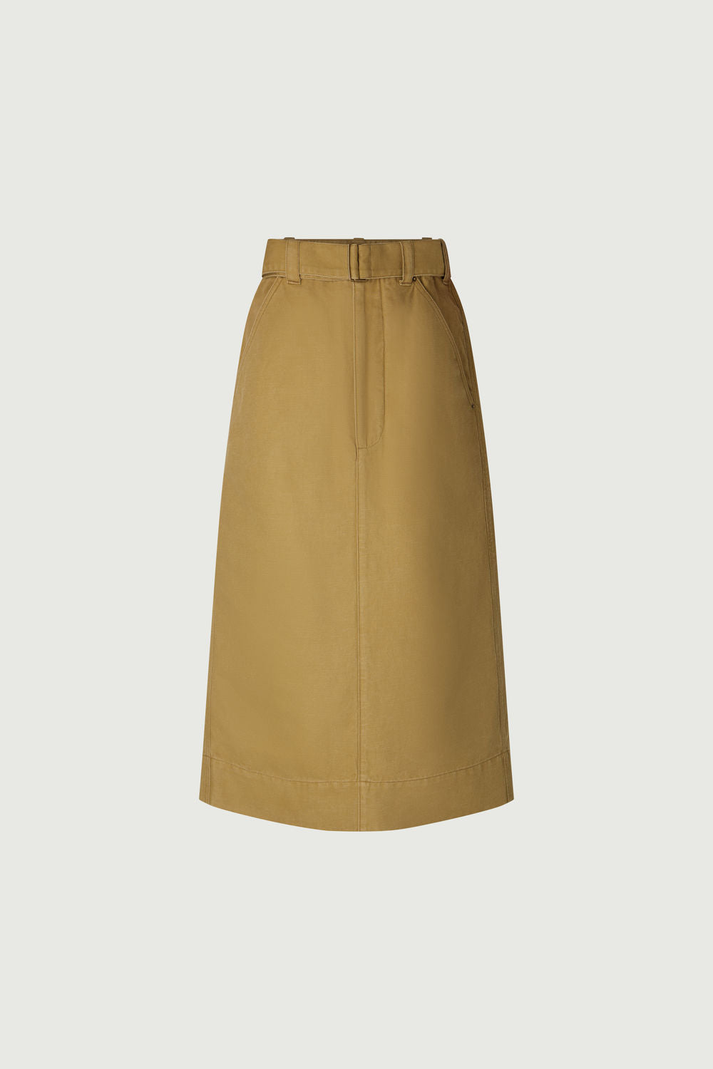 CLARA es una falda de sarga de algodón y lino. Ideal para looks sofisticados y desenfadados, esta falda es un imprescindible para un armario elegante y versátil.