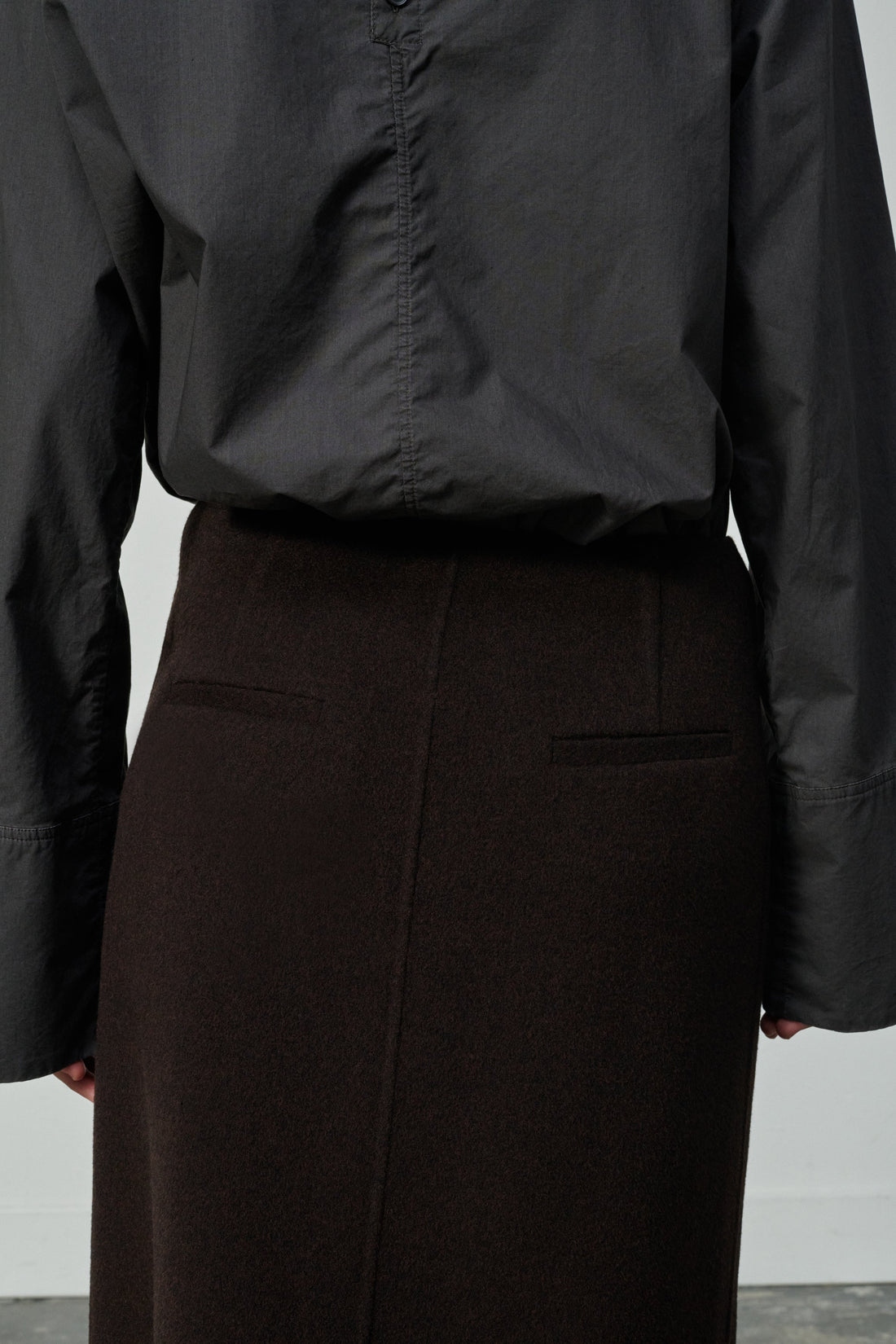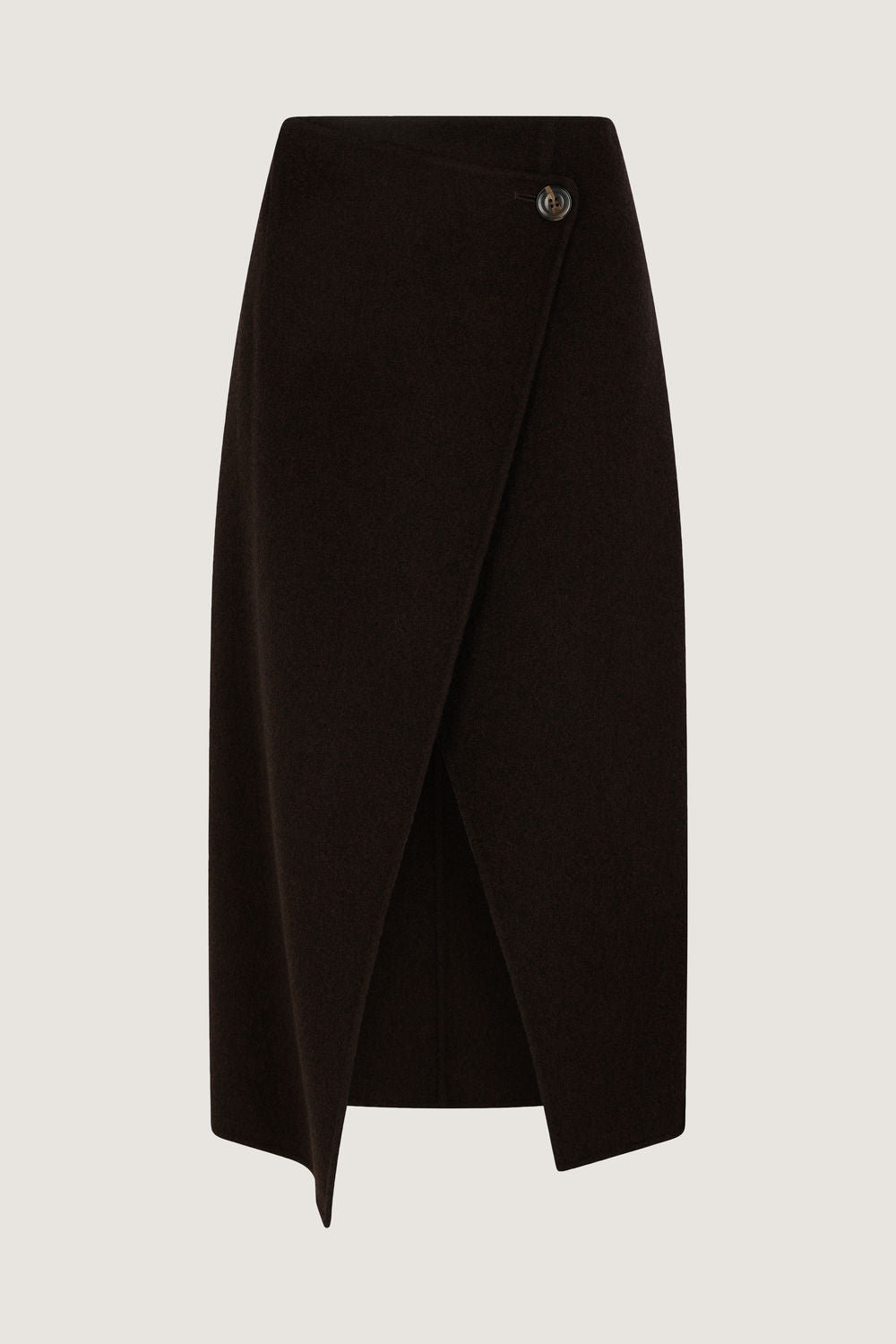 Falda cruzada asimétrica de lana de doble cara marrón moteado