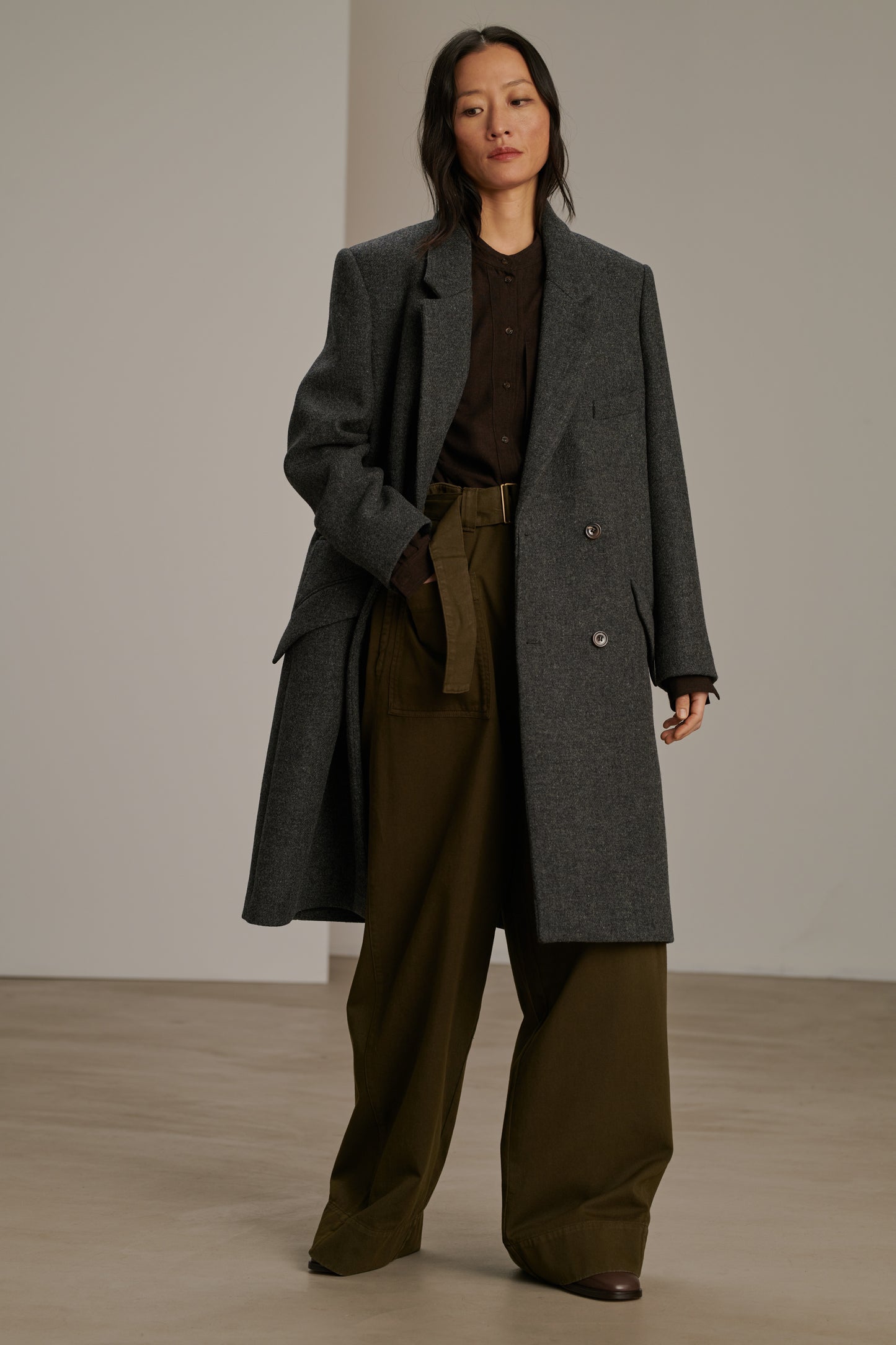 WADDEN es un abrigo de longitud media en tweed doble gris jaspeado. Diseñado con un volumen recto para una silueta depurada, seduce con su look masculino atemporal. Dotado de un elegante cuello sastre y una tapeta con botones en la parte delantera, combina estilo, sofisticación y modernidad.