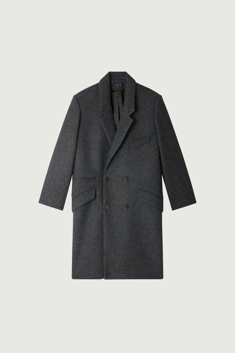 Abrigo largo de tweed gris jaspeado doble gris jaspeado oscuro