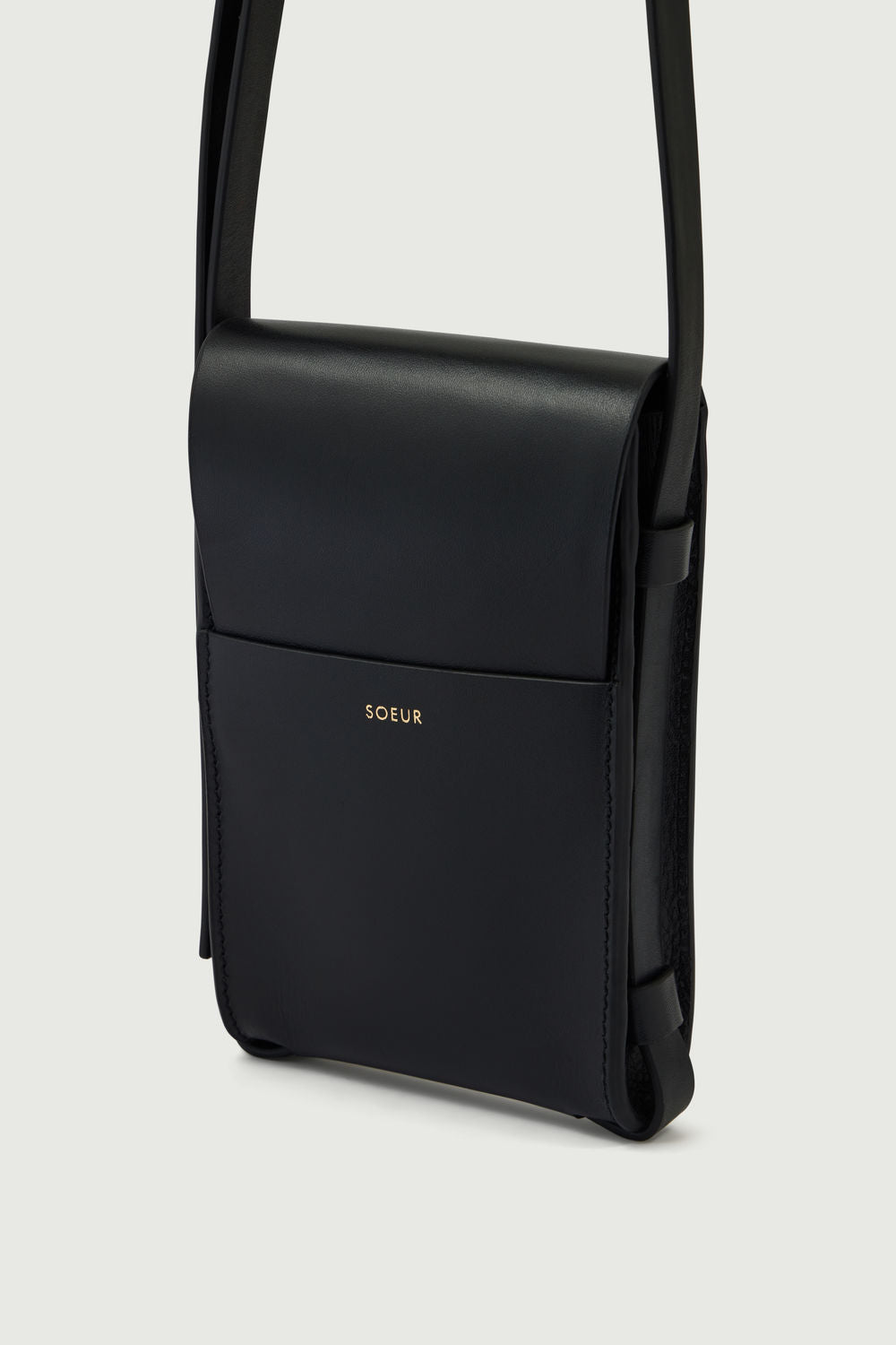 bolsillo charly Portateléfono de cuero liso con bandolera