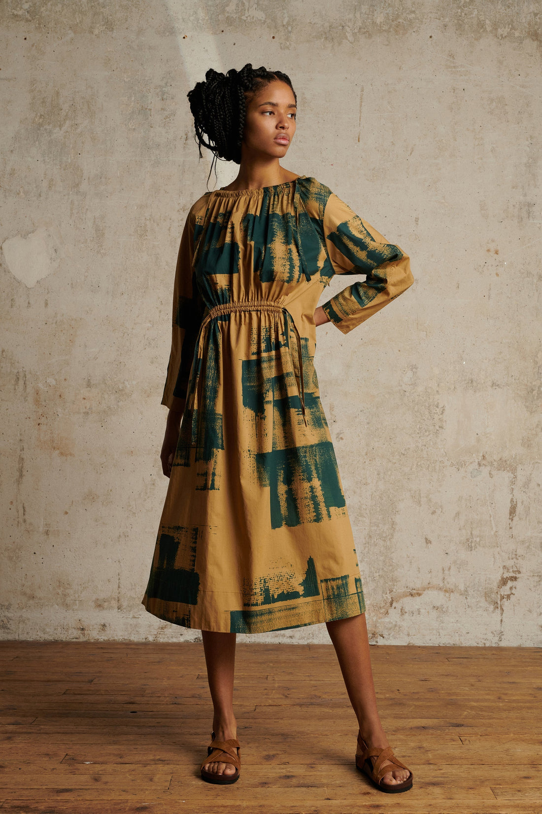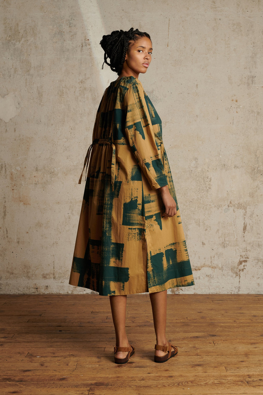vestido uyuni Vestido de popelina de algodón estampado en azul y beige