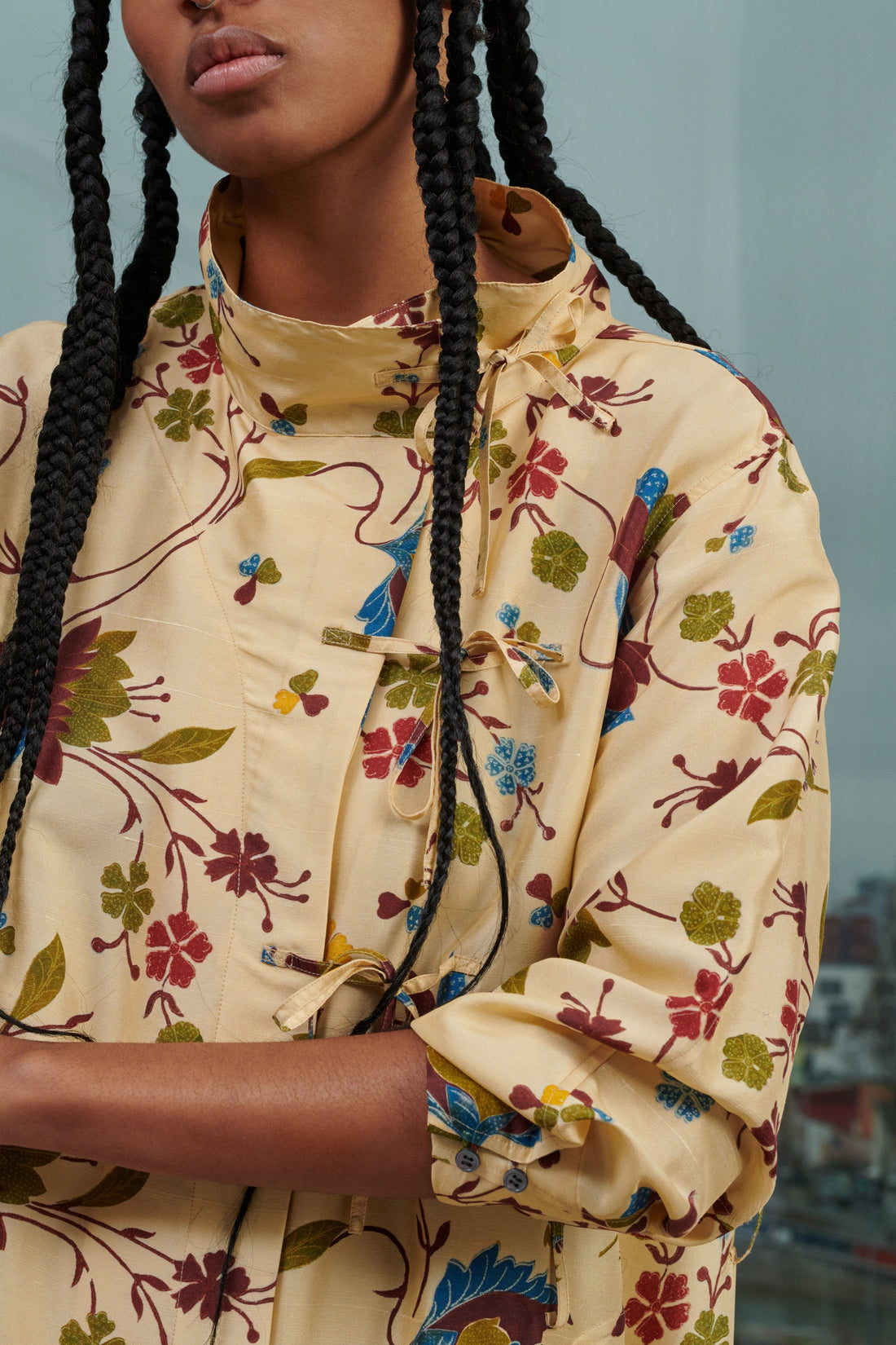 Vestido con cordones de popelina de algodón - Vestido largo y volumen recto, se puede llevar con o sin cinturón- Cuello ancho y bajo- Sistema de cordones decorativos- Botonadura oculta en el centro delantero hasta medio muslo- Manga larga ancha con sistema de botones en los puños- Abertura en la parte central delantera- Cinturón desmontable